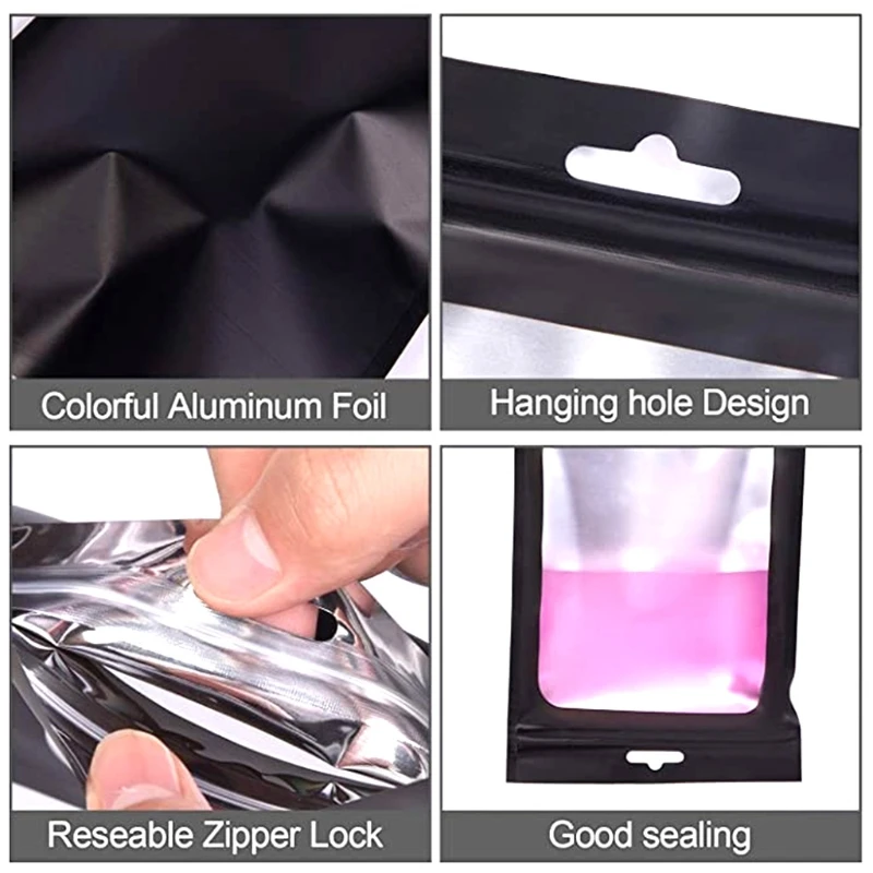 Bolsas de aluminio planas con cierre de cremallera, bolsa de cosméticos de sal de baño, un lado, transparente, Mini bolsas gruesas de Mylar resellables, a prueba de olores, con cierre Ziplock bolgi, 100 piezas