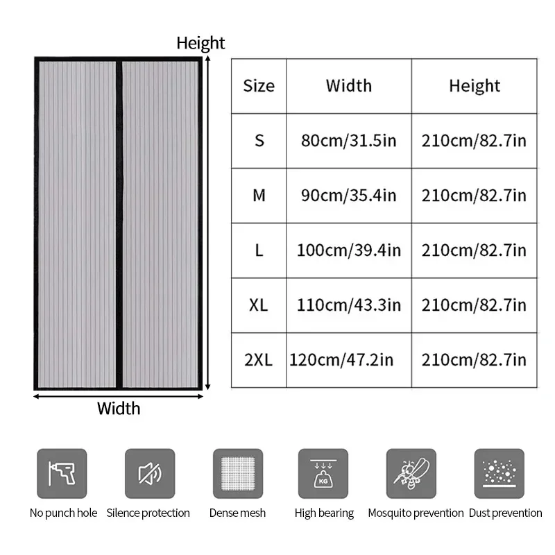 Cortina de puerta antimosquitos, pantalla de puerta de ventilación Invisible, sin perforación, cierre automático magnético, pantalla de insectos antimoscas