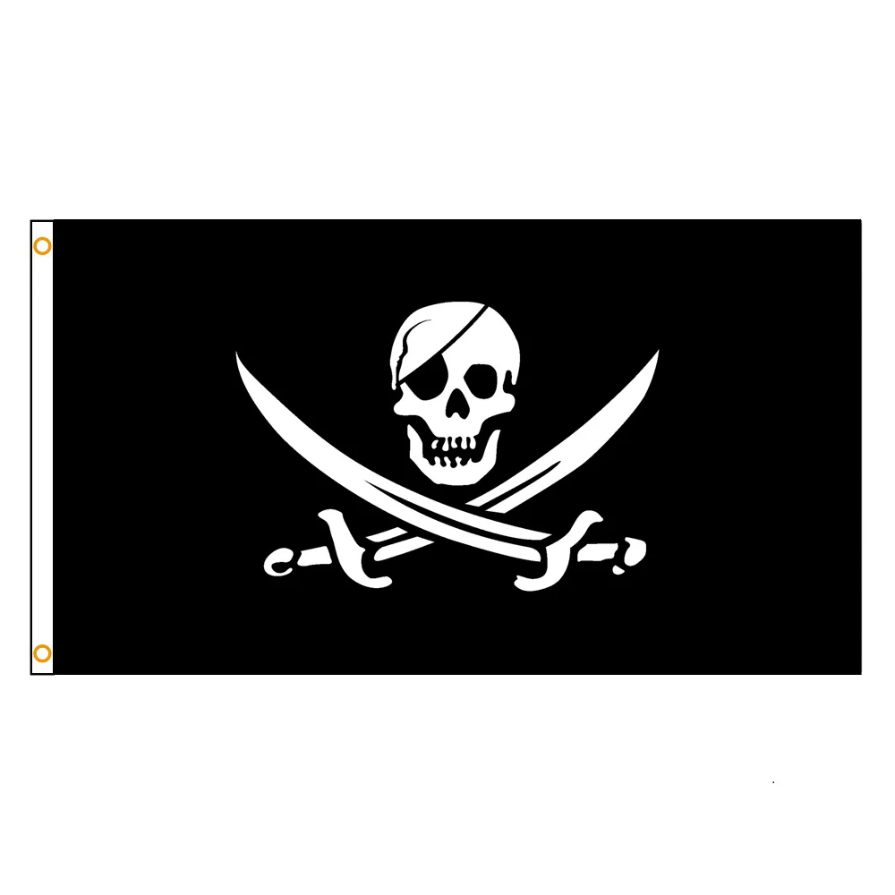 FLAGLINK-bandera pirata de calavera grande, Jolly Roger, 90x150cm