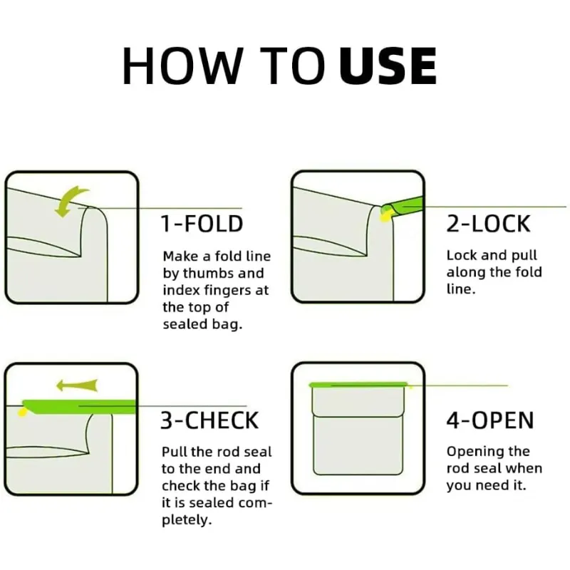 Fácil de usar, sin pasos complicados, puede sellar sus bolsas abiertas en segundos.
