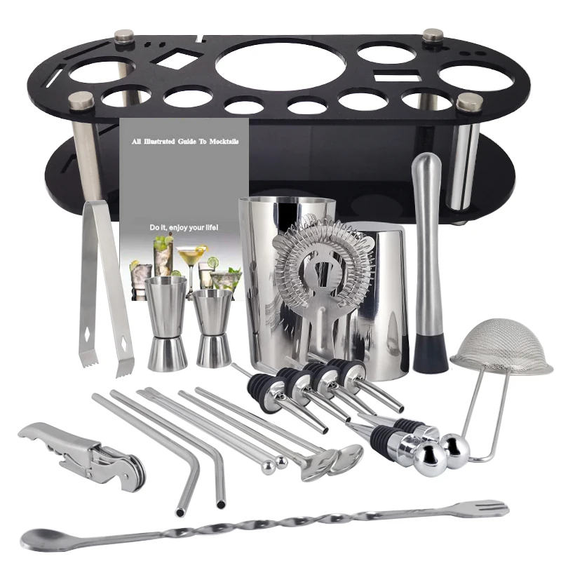 • Bartender Cocktail Shaker Kit de herramientas :Este kit incluye todo lo que un barman necesita para mezclar cócteles y vinos, por lo que es imprescindible para cualquier bar en casa.