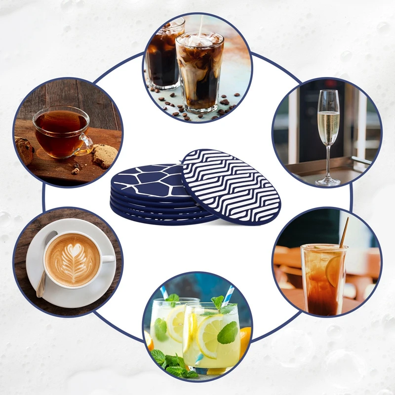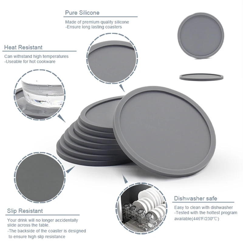 Posavasos redondos de silicona de 6 piezas y 10cm, alfombrilla de goma resistente al calor para taza de té, taza de café, soporte de vidrio para bebidas, almohadilla de decoración, tapete de mesa