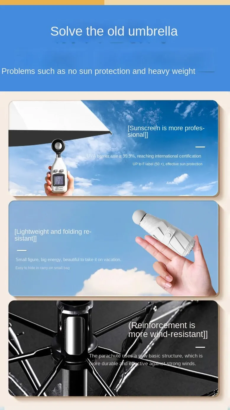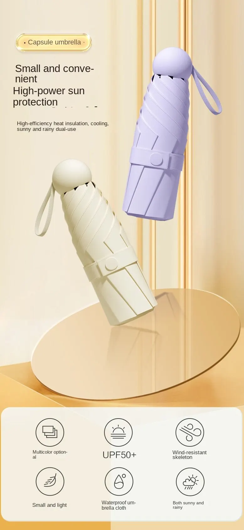 Creo que será muy conveniente y compacto para poner con usted, todo se abre y se cierra normalmente, incluye un paraguas, una pequeña cubierta para un paraguas y una cápsula donde se puede poner todo. ¡Asombroso!❤️